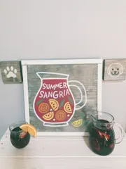 サングリア 今月ワークショップでミニサインボード(サングリア)を作りました お部屋に飾ったらサングリアが飲みたくなったのでさっそく作ってみました ■材料赤ワイン、好きなフルーツ(オレンジ、りんご、キーウィ、いちご、冷凍ベリーミックス) ■作り方①好きなフルーツをカットしピッチャーなどガラス容