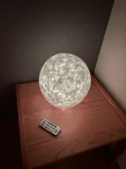 子供とランプシェイドを作りました❗️障子紙を破ったり、貼ったりして完成(^^)型は、風船を使い、ライトは100均で購入しました❗️