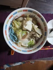 先日行った四万温泉で四万ブルーのうどんを買いうちにある具材を入れて煮込みうどんを作りました!ブルーのおうどん美味しくいただきました😊