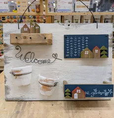 HL.13 塗り壁デザインプレート 稲沢店のオリジナル【塗り壁デザインプレート】を作って来ました😊💕初モルモルは楽しかったけど🎶✨🎶ノープランで行ったので、ほぼ見本通りにやりましたが、作業に追われ😆あたふた😂アタフタ💦💦これが私の限界🤣🤣Welcomeの文字が〜〜😱もっとおしゃれにするつもりが💦これではお招き出来ない😂💨💨
