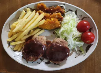 業スーのポテト🍟 フライドポテトが大好きなんです🍟🎶業スーのポテトを冷凍庫に入れるためにお肉を出してハンバーグにしました😆