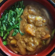 カレーうどん 昨日のカレーをうどんにかけて春菊を乗せました😊