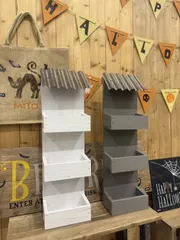 壁掛け3段プランター 先月マイショップで作って来ました🤣お友達と2人🤭アドバイザーさんお二人とマンツーマンでサクサク進んで〰️ 3時間コースでしたが色々端折って2時間ちょいで完成😁プランター部もパチリ📸アドバイザーさんのハロウィン🎃フォトスポットがめちゃ可愛い🥰🫶只今アレンジ中です😊