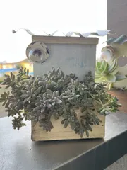 暴れ多肉植物*°♡ ■作品内容夏に徒長した多肉植物をそのまま日向に置いて何もしなかった結果何となく良い感じに🤭 夏に徒長した様子■工夫ポイントベランダの向きでこの季節お日様が当たる時間に限りがある為しっかりお日様に当てたくて太陽の向きに合わせて東に向けたり西に向けたりしました🍀*゜