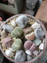 GWSで寄せ植えしたリトープス·͜· ꕤ︎︎右上の真ん中が割れてきてる🤭脱皮かな? 右下のも少し隙間が開いてきた様な気がする😆
