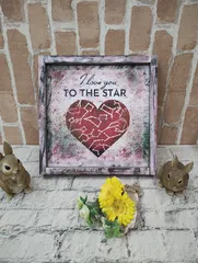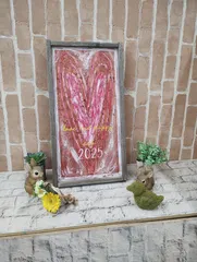 こんなふうに飾りました✨もう何作品目という作品です✨💕今日は大人可愛いビンテージ溢れるフレーム付サインボード作りました。最後の仕上げにブラシで弾いて立体感と夜空🌌に輝く星空をイメージしました✨午後はまた楽しみです✨ありがとうございました✨