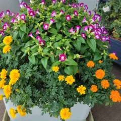 NEW お得に寄せ植え♪ ■作品内容セール品3ポット(計110円)で寄せ植え。マリーゴールドとトレニアが綺麗に咲きました〜。 ■こだわりポイント元気がなくなりセール品になってしまった苗から、復活しそうなものを選抜。見事に花が咲いてくれると嬉しくなります。今回は花の色が分かる苗を選びましたが、どんな花になるか分からな