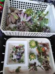 多肉寄せ植えの仕立て直し方🪴 仕立て直し後アイキャッチ画像は以前ご購入、寄せ植え教室に参加された方の寄せ植えです😁仕立て直しのご依頼があったので私のやり方1例をご紹介します😊多肉🔰初心者さんの参考になったら幸いです🤗 ■材料食品トレー ピンセット ハサミ 新しい土 オルトランDX鉢から引っこ抜いた多肉達ここから仕分けて