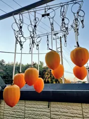 夜明け前からいそいそと干し柿作り😅今回は愛宕柿です。日の出とともに干し始めました。 私しか食べないので少しだけ。美味しくできると良いなぁ🎵