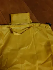 ■材料放水の傘の生地コードストッパーミシン糸 ■作り方ダウンコートを畳んだ時の大きさを測り、その大きさの巾着袋を作ります。コードを通してストッパーを付けます。持ち手も付けました。小さく畳んだ時に入れるポケットも付けました。 ■工夫ポイント巾着だけでは持ち運びに不便なので、小さな持