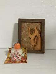 ■作品内容2026年の干支🐴&晴れ着を着たウチの子フィギュア ■工夫ポイント我が家の3姉妹🐶の似顔絵をウッドバーニング教室の先生が描いてきくれます。専用のコテで焼き アクリル絵の具で塗ります。フィギュアが小さいので繊細な作業です。色塗り後の2度焼きが1番楽しい💕