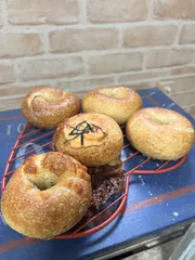 自分パン🥯 全粒粉ベーグル前日に準備して冷蔵庫発酵してみました。 朝ケトリングして焼きました😊うーん、美味しいけどやっぱりいつもの味ではない…😥 プレーン チーズ 明太マヨ 明太マヨとプレーンペロリと食べちゃいました💕