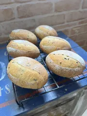 新レシピにチャレンジ→プレゼント用 長時間発酵→クッペチャレンジ中✨レシピ、オーブンの温度色々試しています かっこいいクッペ焼けるようになりたい 同じレシピでも同じにならないパン 奥深〜い→自分好みに焼ける→やめられない 焼きたて美味しい😋残りは、プレゼント🎁
