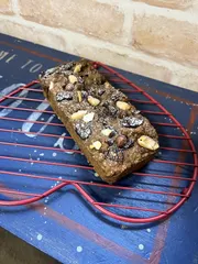 いつもの米粉マフィンレシピでパウンド型に流しただけ クルミを混ぜ込み、残ってたナッツ類とチョコをトッピング 甘さは、完熟バナナと甘酒だけ👍 甘すぎないおやつが自分好み💕