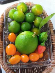 シークヮーサーは12個ライムは、1個だけですが初めての収穫が嬉しい❣️😄😄モヒートが好きで育て始めたライム💕たった1個だけど上手く作れるかな🤔ミニトマトやパプリカもまだ収穫できていますが、寒くなってきたので今後は色づくのに時間がかかりそうです。そろそろ終わりにしなきゃと思いながら、青い実がまだたくさ