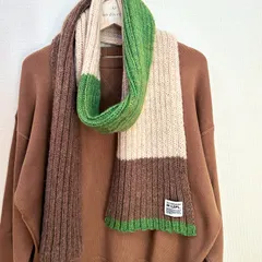 はじめての棒針編み🧶 かぎ針編みより難しそう…と、なんとなく敬遠してきた棒針編みに初挑戦。糸の掛け方ひとつにも苦戦して最初は指がつりそうになってたけど、同じ手順を繰り返すうちようやく慣れてスムーズに編めるようになってきました。 ブラウン・グリーン・オフホワイトの配色切り替えでメンズっぽい雰囲気にしてみたよ。次は
