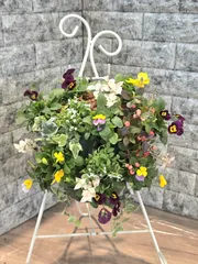 ハイポネックス社 服部先生のビオラのハンキングバスケット教室 ハイポネックス服部先生の、ビオラのハンキング教室に、行ってきました。🧺🌼🌸🌿🎶 今日のお花たちです🌿。 ビオラ10株、アリッサム2株、チェッカーベリー、ハツユキカズラ、ヘデラ各1株です✨️💕 ビオラのお花選びも、先生にサポートして頂いて、初め
