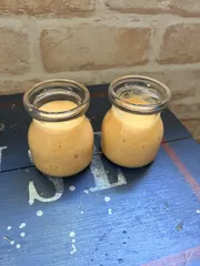 友達に教えてもらった柿プリン作ってみました。 完熟の柿と牛乳だけ (2対1)ミキサーで混ぜて冷やすだけで固まるんだって ほんとに冷やすだけ固まって、美味しかったです✨
