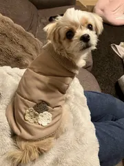 スリコの簡単リメイク スリーコインズの去年買ったコートを簡単リメイク、娘がお花のモチーフを編んでくれたので付けてみました。