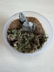 苔テラリウムその後 カプセル苔テラリウムを作って一か月くらい経ったカプセル苔です♪なんとか枯らさず育ってます☺️お水はほとんどあげてなく、日に当たらない場所に置いてます😌少し伸びてきたようです🥰