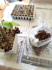 遅すぎる多肉の葉挿し😅 昨日tanikyuちゃんが葉挿しの投稿してたから私も放置していた葉挿しをプラグトレーに挿しました😄サラッとお水かけてます多肉事の中で葉挿しはやりたくない作業🤣既に発芽発根してた葉もありました😣遅くなってごめんね🙏と思いながらこれだけ寒くなってからやるもんじゃないですね😅たぶん春まで動きはないと思いま
