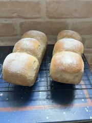 昨日休みだったので息子用も焼きました 人気の白パンアレンジ4個だけシュガーバターのせました残りは、あと入れホイップ