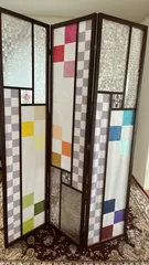 市販の障子のパーテーションをリメイクしました大正浪漫風にと…ガラスフィルム、和紙、ペーパーナプキンをペタペタと貼りました盛りすぎてカラフルになってしまいました (笑)