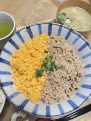 鶏そぼろ丼・8・ 昨日の晩ご飯🍴 旦那が実家に帰ってていないので手抜きの鶏そぼろ丼に🤭💕 簡単美味しい(*´~`*)ŧ‹"ŧ‹"ŧ‹" 炒り卵はじっくり超弱火でお箸でぐるぐる🌀かき混ぜて作るとしっとり美味しく仕上がります🍀*゜