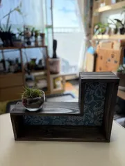L型シェルフ WS なかなか機会が無く参加出来たかったWS簡単に出来て可愛いシェルフ✨ 壁紙使用、壁紙が違うと雰囲気全然違う。可愛く出来て 大満足🈵