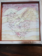 さらにアレンジB&B富士山 アレンジ前色鉛筆でさらに富士山を際立たせました😊雪の残雪残る風が吹いて雪が舞う朝焼けの富士山を表現しました✨