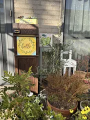 新製ポストにはミニサインボード置きがある BOXありの大きなもの:高さ130㎝位)には私が大好きなB&bミニサインボードを設置できるので、通りからよく見えるこの場所にはビタミンカラーのボードを飾っています。配達員の方も元気が出る様に(もちろん家族も) 郵便受けの上にもかなりのスペースがあるのでこちらにもお気に入りのBOXを