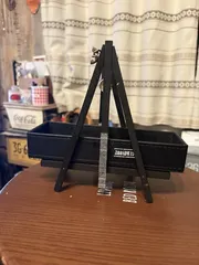 男前ラック完成‼️ boxを、イーゼルに接着剤で付けて釘を4ヶ所打ちました。メガネ、リモコン、サランラップなど小物整理に重宝します。 ■こだわりポイント前回は木の風合いを活かしてナチュラルにしましたが今回は黒で統一して男前に!安定のために真ん中に丸棒を強力接着剤で付けました。仕上げにチェーン、シールでカッコよ