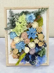 プリザーブドフラワーを使って額アレンジをしました。縦置きにも横置きにもできます。その日の気分によって、また飾るスペースによって置き方を変えて飾るつもりです。