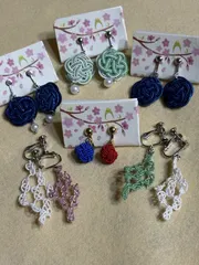 水引でアクセサリー作り(イヤリング) ■作品内容水引の基本の淡路結び、梅結び、抱き淡路結び、玉結びを使って、イヤリングを作りました。■こだわりポイント梅結びのイヤリングは、どちらの面が見えてもいいように、リバーシブルにしました。