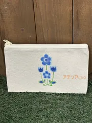 アデリアレトロなトートバッグ(花レース) ■作品内容アデリアレトロなトートバッグを作りました。見本は赤い花でしたが、私の大好きなブルーの花にしました。葉っぱや茎の部分はグリーンで。■こだわりポイント布絵の具でステンシルをする時は、とにかく絵の具をつけ過ぎない事。薄く薄くトントンと。を意識してステンシルしました。これで、裏に絵の具がうつること