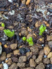 グレーシスもおはよう🎶 ラナンキュラスラックスたち10/11から少しの水で始めた水やり昨年株分けした3鉢ともお目覚めしました〜🤗今年の4月です🤍🤍🤍 mahalo♡