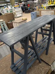 ワークデスク3台目🎶 久しぶりにワークデスクを作って来ました🤗このワークデスク2台くっつけると作業台にぴったり、広くて高さもちょうどよくて、寄せ植えや植え替え、色んな作業するのに重宝してます‼️本当はもっと違う使い方もしたいのにもうこの2台は動かせません😆ずっと作りたいと待っていたら今月近くの店舗で開催される事に🎶カラー