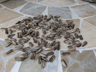 ひまわり🌻の種🎶 ひまわり🌻の種やっと採れました‼️🎶こんな風になってから2週間!小さなひまわりです。種採れそう😆小さなひまわりでも種130粒位採れました🤗🎶来年もたくさん咲いてくれるといいな🌻🌻🌻🌻🌻 mahalo♡
