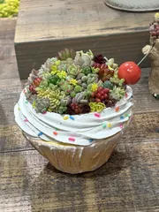 可愛いスイーツ鉢に多肉植物の寄せ植え