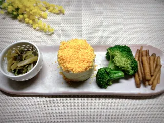 ミモザ風ポテサラ 春を感じるお花 ミモザを頂きましたそうだ- ̗̀ 💡 ̖́-ミモザサラダを作りましょっ✨となりまして可愛く盛り付けしましたよ~💕 ■材料・じゃがいも・玉ねぎ・人参・ゆで卵・マヨネーズ、塩、コショウ、辛子、カルピス ■作り方 ポテサラは一般的な作り