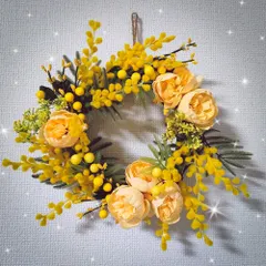アートフラワーのミモザリース