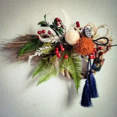クリスマス飾りも何もしてないのに、もうお正月飾り😅いつもドライフラワーを教えてくださる先生のWSで作ってきました🎵1時間しかなかったので、ホントにできるのか?と不安でしたが、ひとつひとつの花材が大きくて、すぐに形になっていきました😆それでも、「あ、取れた😨」とか「折れた〜😱」とかの繰り返