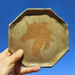 ■作品内容陶土で作った陶板皿 ■工夫ポイント①真っ白な土を使用、その白さを活かしたデザインに②陶板皿は高台が無く、持ち上げにくいのが難点なので、右上のみを立ち上げ使いやすく③和菓子やケーキ等のデザート皿として④勿論、飾り皿としても👍⑤躍動感たっぷりのシルエットホース⑥インディゴブルーは陶芸