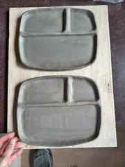 仕切り付きプレート皿 地道にコツコツ作陶続けています。今日は寒くて寒くてたまらなかったけど、写真のこちらとその他諸々、完成したり、新たにつくったり、色々できて良かったです😊焼成まではまだまだ長い道のりですが(窯の中に目一杯詰めて焼くので、大量の作品をつくる必要があります)、これからも真面目に真摯に謙虚に作品作り、楽しくが