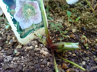 地植え組クリスマスローズ 皆様のお宅のクリロが咲いていて羨ましくて、花壇に植えてるうちのクリロ見に行ってきたんですけど、これは?蕾かな?蕾だよね😊白いクリロが咲くはずの苗だし😁去年鉢植え枯らしちゃったから、咲いてくれたらすごく嬉しいです🎵