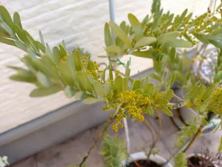 暴れてるミモザ 去年より多く花を付けてるのは嬉しいんですが、どのくらいまでカットしていいやら😥かたちを整えたいんだけど😆あんまり切りすぎたら来年咲かないかもしれないかな?月曜に先生に聞いてこよう😅