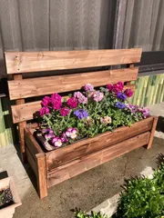 昨日作ったベンチ型プランターにお花を植えました🌼もりもりで可愛くできた💓