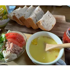 今朝のご飯🍞♪ 今朝は、ホームベーカリーで、じゅなさんに教えていただいたレシピ『ミルクリッチパン』を焼きました🍞 部屋の中は、パンの焼ける香りで、いっぱいとてもいい香りです💕昨日はおせち三昧だったので、今朝は通常モードでも、お昼はお雑煮の予定です♪ ミルクリッチパン🍞は、フワフワで柔らかくて美味