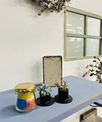 先日作ったミニボトルのルームフレグランスの香りが広がるように蓋を取ってガーゼをかけました🎶玄関のミニ足場風ラックに置きました✨ほのかに香ってる?かな😊