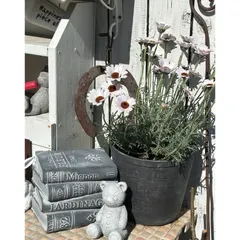 NEW ローダンセマムを🎵2個目 こちらは、ブリキのポットに、麻布を敷き、イベリスと一緒に植え込みました🎵白が可愛いです😍